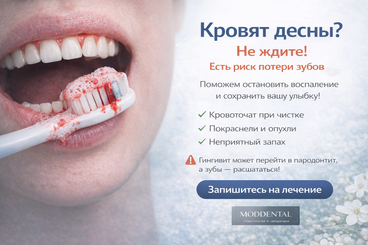 📅 Запишитесь в Mod Dental — чем раньше начнем лечение, тем проще сохранить здоровье десен и зубов.
